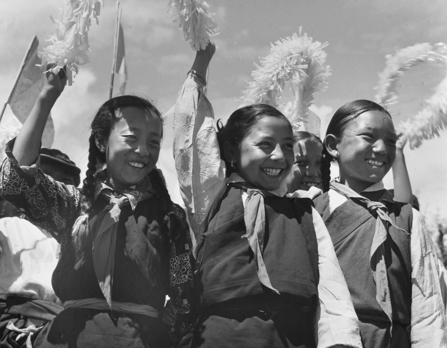 1965年9月,藏族儿童在自治区成立大会上欢呼。新华社记者马竞秋 摄