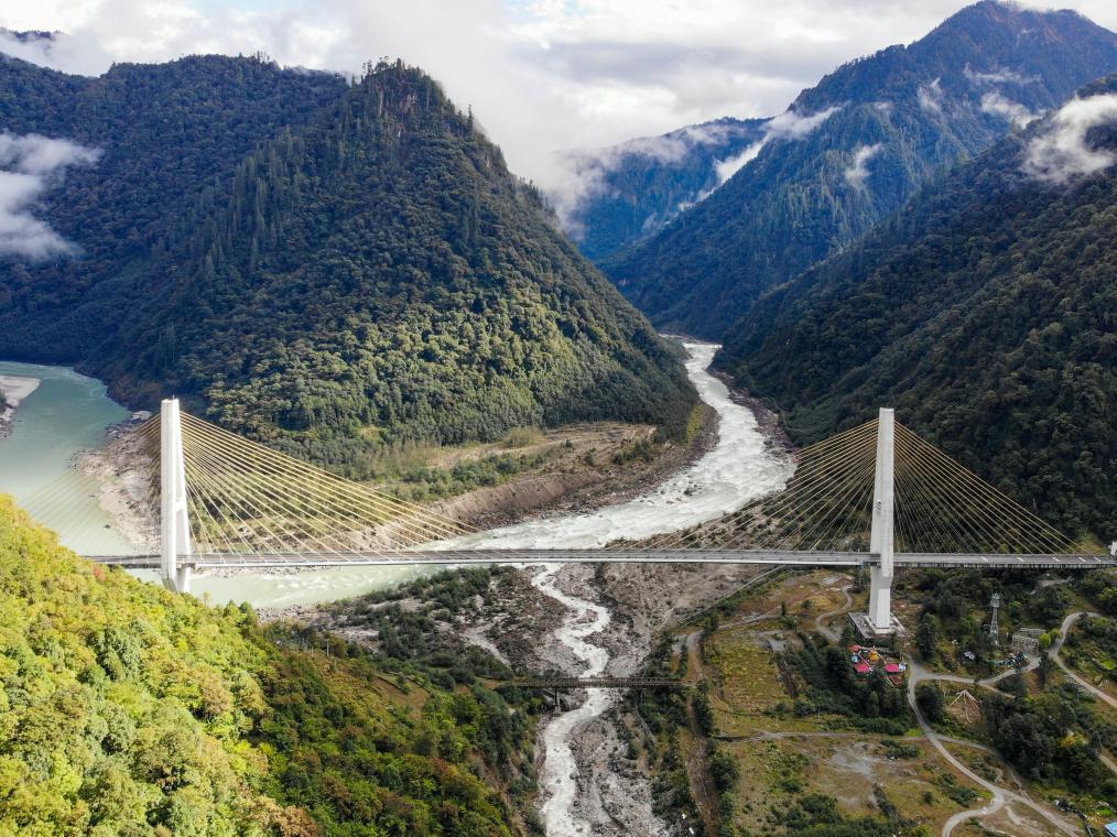 2019年10月27日拍摄的川藏公路通麦路段上的迫龙沟特大桥。新华社记者 孙非 摄
