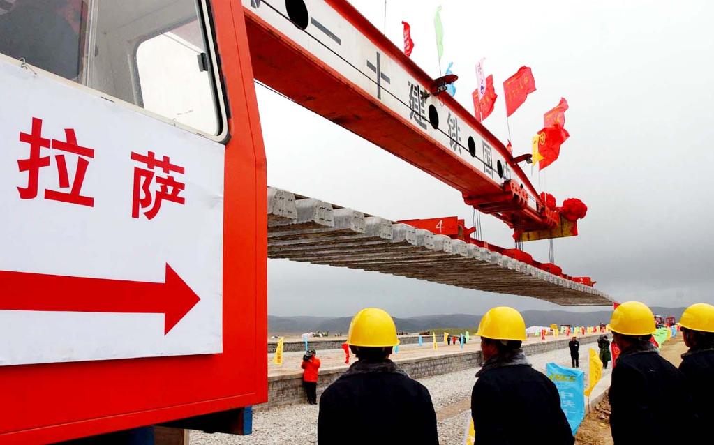2004年6月22日,第一段铁路轨排在安多火车站铺下。新华社记者 索朗罗布 摄