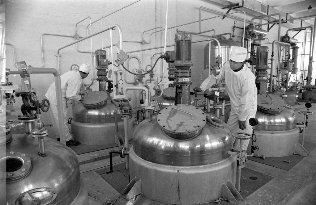 1965年,国营澎波农场的藏族工人在使用农机脱粒。新华社记者 吴祖政 摄