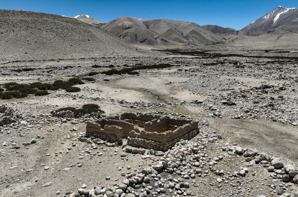 2023年5月28日拍摄的阿里地区噶尔县扎西岗乡典角村在20世纪60年代修建的“一代房”的残存。新华社记者 晋美多吉摄。