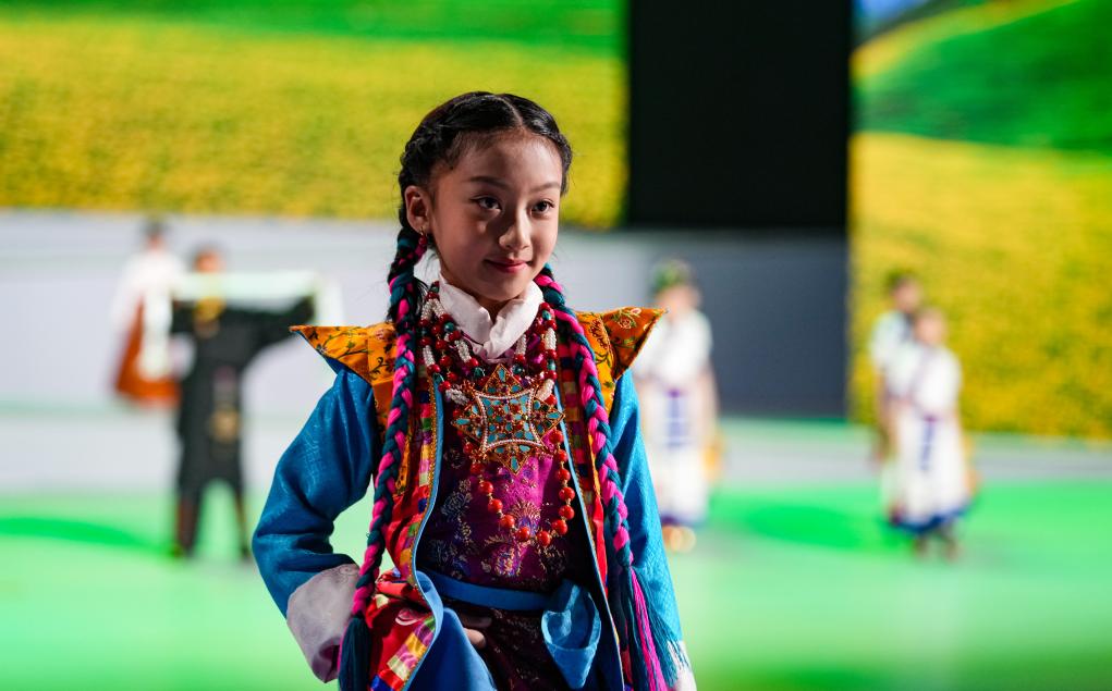 2025年1月5日,首届“衣脉相承”服饰文化周上小朋友展示藏式童装。新华社记者 晋美多吉 摄