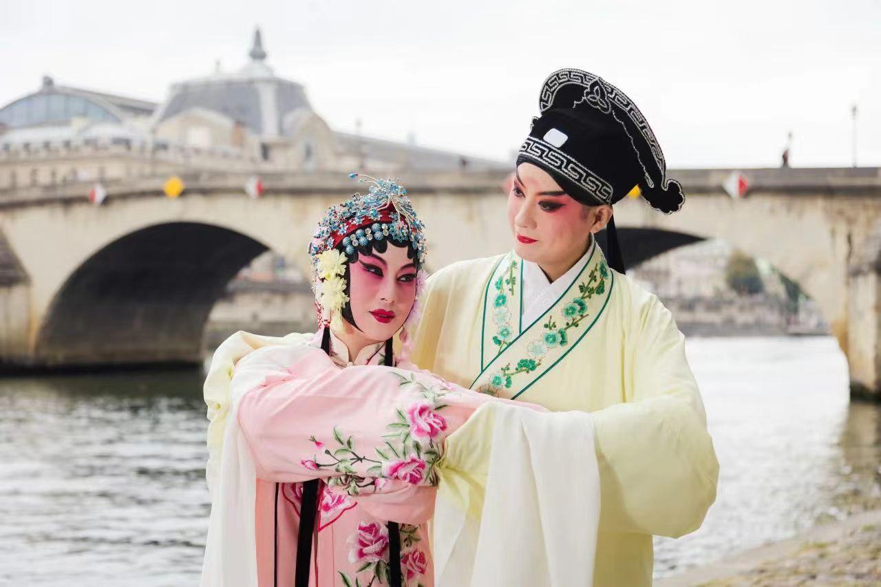 2023年9月,“文明遇·鉴:中国昆曲江苏周”在吉美国立亚洲艺术博物馆开幕。巴黎的观众正经历着一种前所未见的奇妙观感:塞纳河水流寂静,中国女旦粉妆玉琢,舞着水袖翩翩走过;埃菲尔铁塔下小径,文生公子气度不凡,与爱侣牵手的模样令人艳羡……