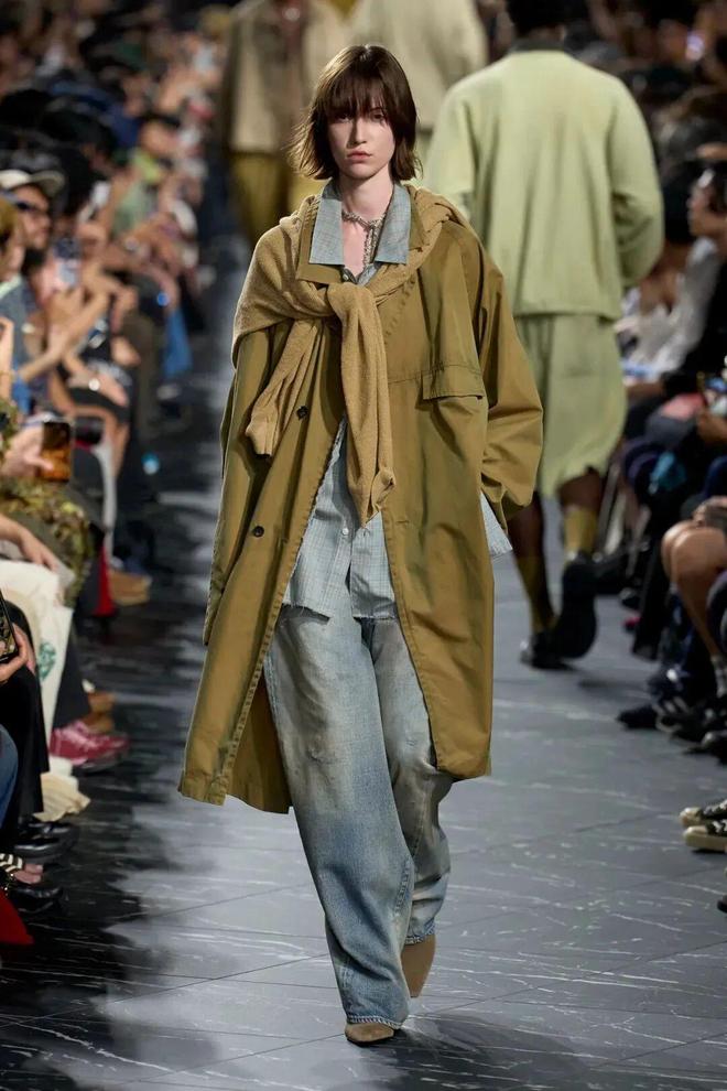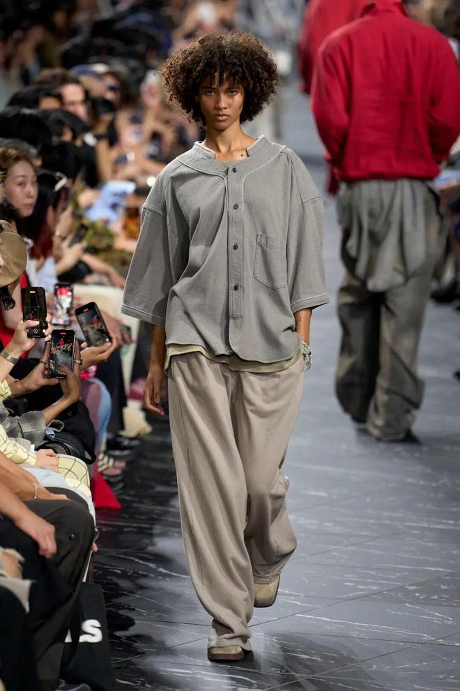 本季ANCELLM 采用混合发布(Mixed)形式,男女装同台展示,风格趋向中性。设计师更注重 “包裹身体” 这一概念,而非刻意塑造身形,模糊了传统男女装之间的界限。宽松的西装外套,男性穿着彰显潇洒不羁,女性穿着则多了几分率性干练;飘逸的阔腿裤,无论是搭配简约上衣还是个性衬衫,都能展现出独特魅力,让不同性别的穿着者都能在服装中找到自我表达的空间,倡导一种超越性别的时尚态度。