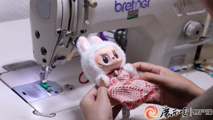 本铭服装设计工作室的工作人员正在为Labubu量身定制娃衣。广西云-广西日报实习生 赵子媖 摄