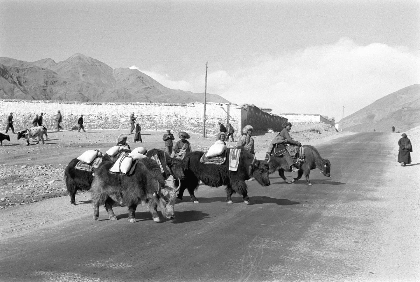 1984年1月,堆龙德庆县(现为堆龙德庆区)的牧民用牦牛把饲料驮回家。新华社记者 徐澎 摄