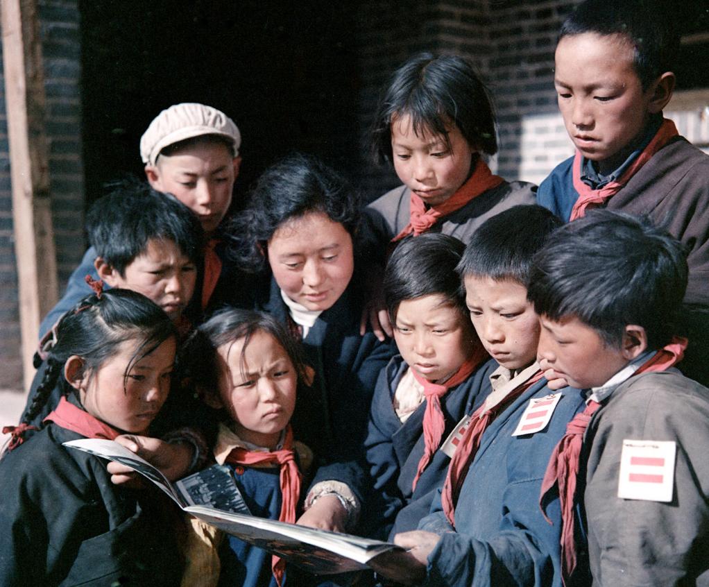 1965年9月,昌都实验小学的老师和学生在看画报。新华社记者 马竞秋 摄