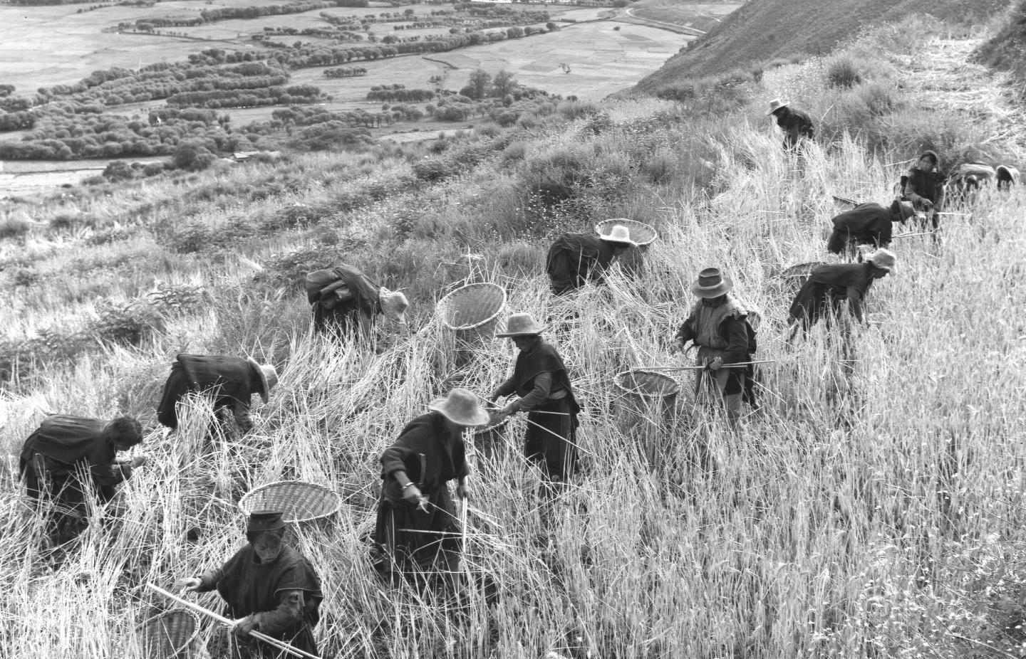 1965年,堆龙德庆县(现为堆龙德庆区)南岗乡互助组组员们在收割庄稼。新华社记者 吴祖政 摄