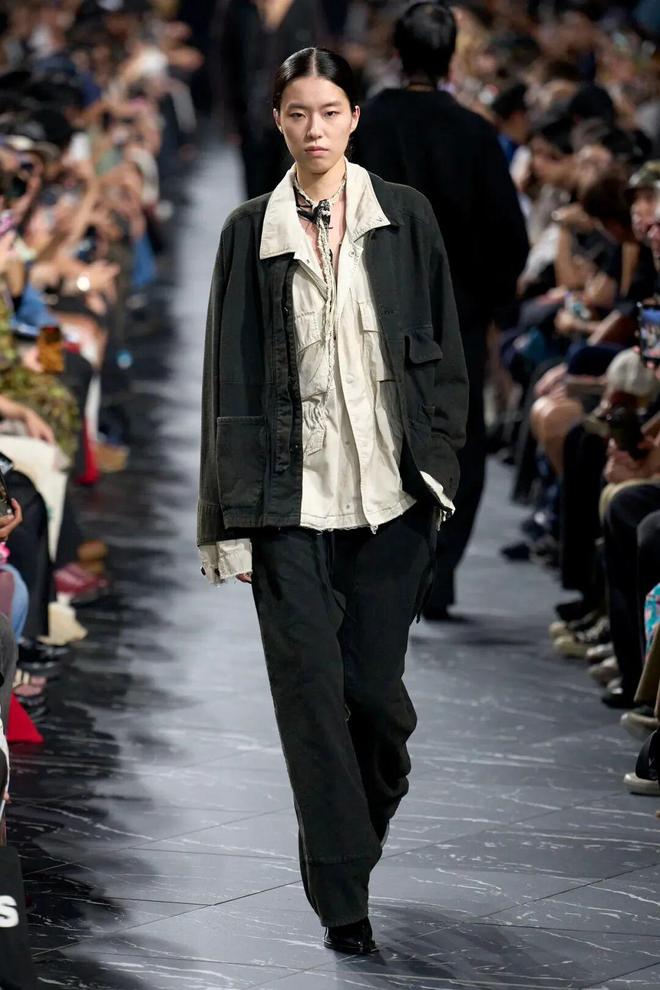 本季ANCELLM 采用混合发布(Mixed)形式,男女装同台展示,风格趋向中性。设计师更注重 “包裹身体” 这一概念,而非刻意塑造身形,模糊了传统男女装之间的界限。宽松的西装外套,男性穿着彰显潇洒不羁,女性穿着则多了几分率性干练;飘逸的阔腿裤,无论是搭配简约上衣还是个性衬衫,都能展现出独特魅力,让不同性别的穿着者都能在服装中找到自我表达的空间,倡导一种超越性别的时尚态度。