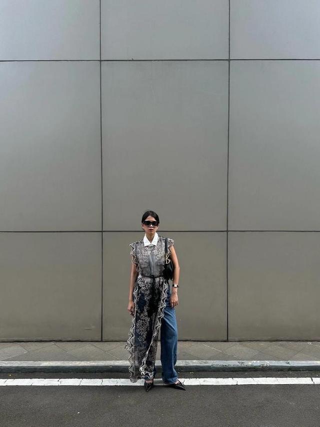 简基础款在 Queensia 的穿搭中占据重要地位。她擅长以简洁的白衬衫、直筒牛仔裤等作为穿搭基石,通过不同的搭配组合,展现出无尽的时尚可能。比如,一件宽松的白衬衫,解开领口的几颗扣子,营造出随性自然的氛围;搭配一条黑色直筒牛仔裤,瞬间塑造出经典的黑白配,简约而不失大气。为了避免单调,她会巧妙地加入个性配饰,如一条复古的皮带,金属扣的独特设计成为点睛之笔,不仅勾勒出纤细腰线,还为整体造型增添了复古韵味;再配上一双精致的黑色短靴,鞋面上的小巧铆钉装饰,进一步强化了时尚感,让整身穿搭在简约中尽显精致。